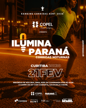10:26 Inscrições para a corrida noturna Ilumina Paraná em Curitiba estão abertas Curitiba será palco da primeira etapa de um dos mais inovadores circuitos de corridas de rua do país. O Ilumina Paraná, apresentado pela Copel, chega à capital paranaense no dia 21 de fevereiro de 2026, com largada marcada para a Praça Afonso Botelho.