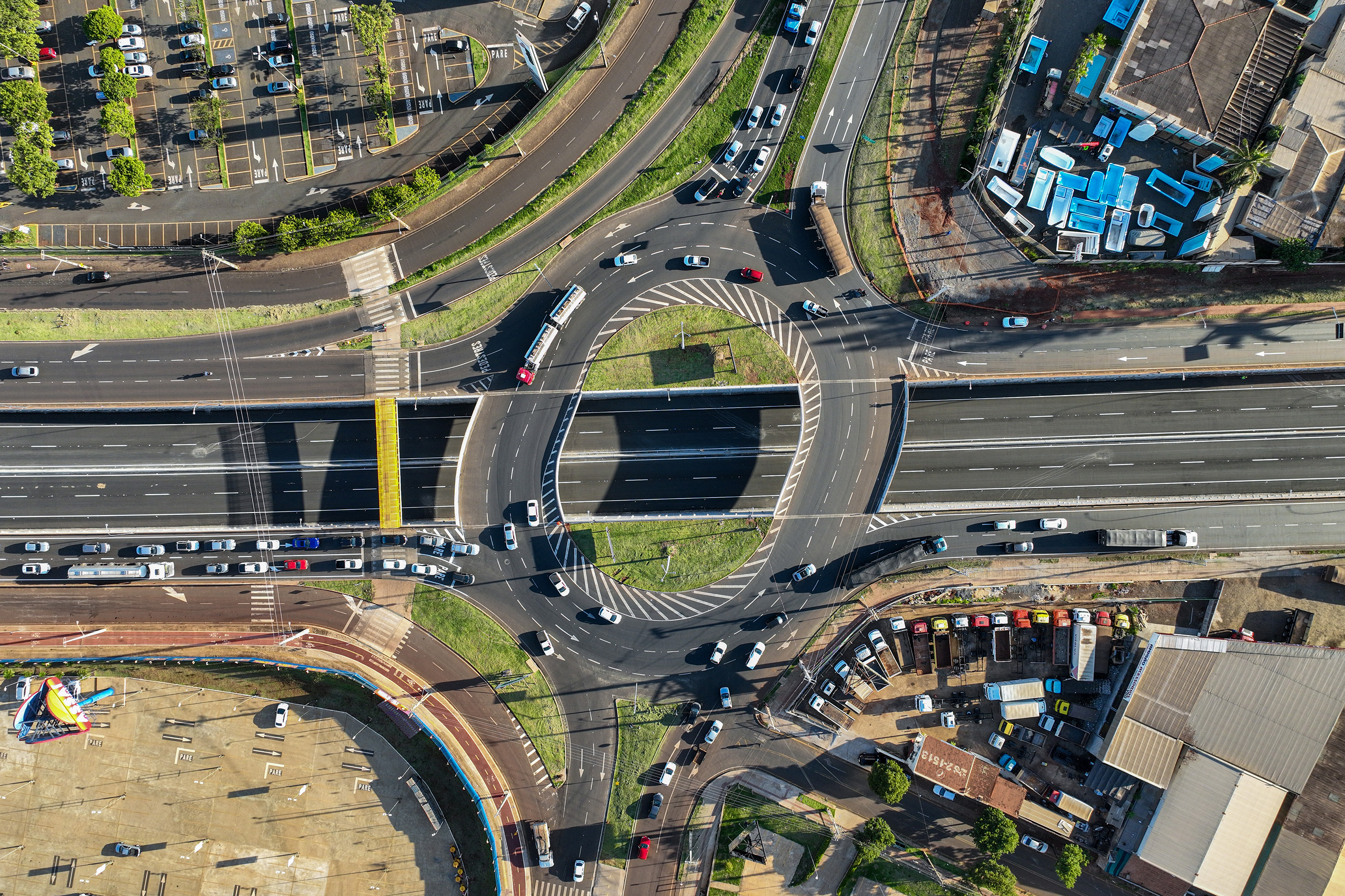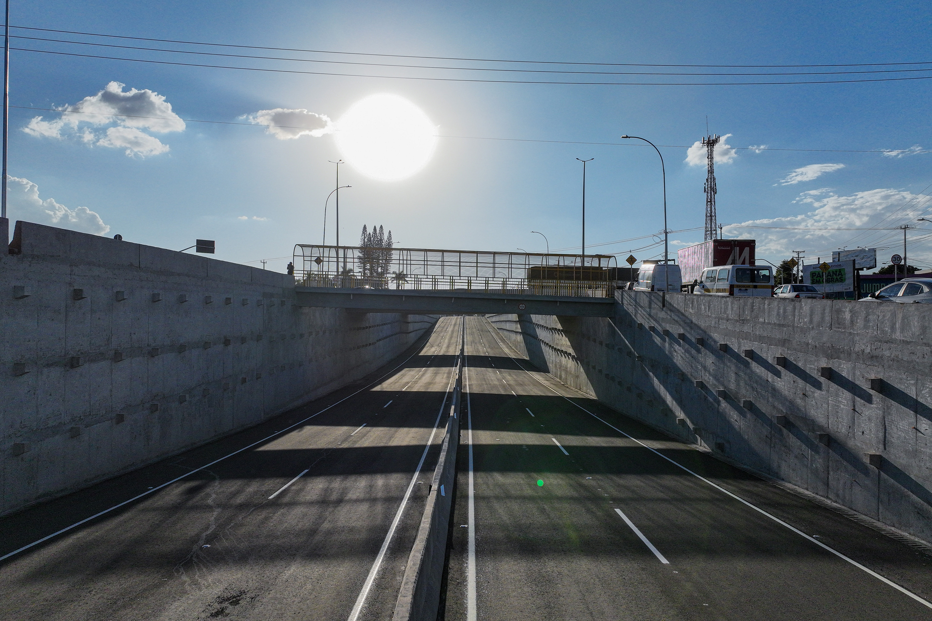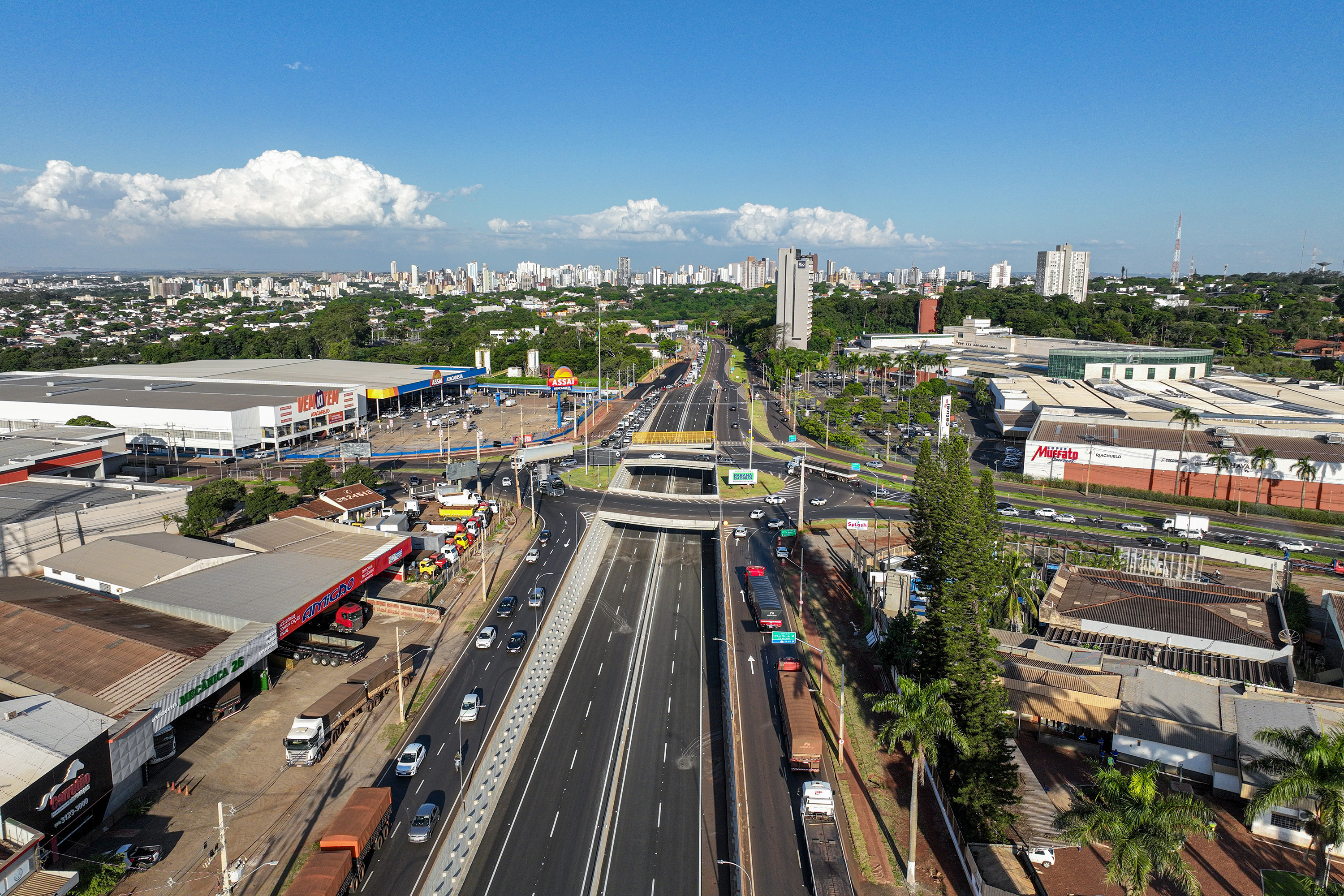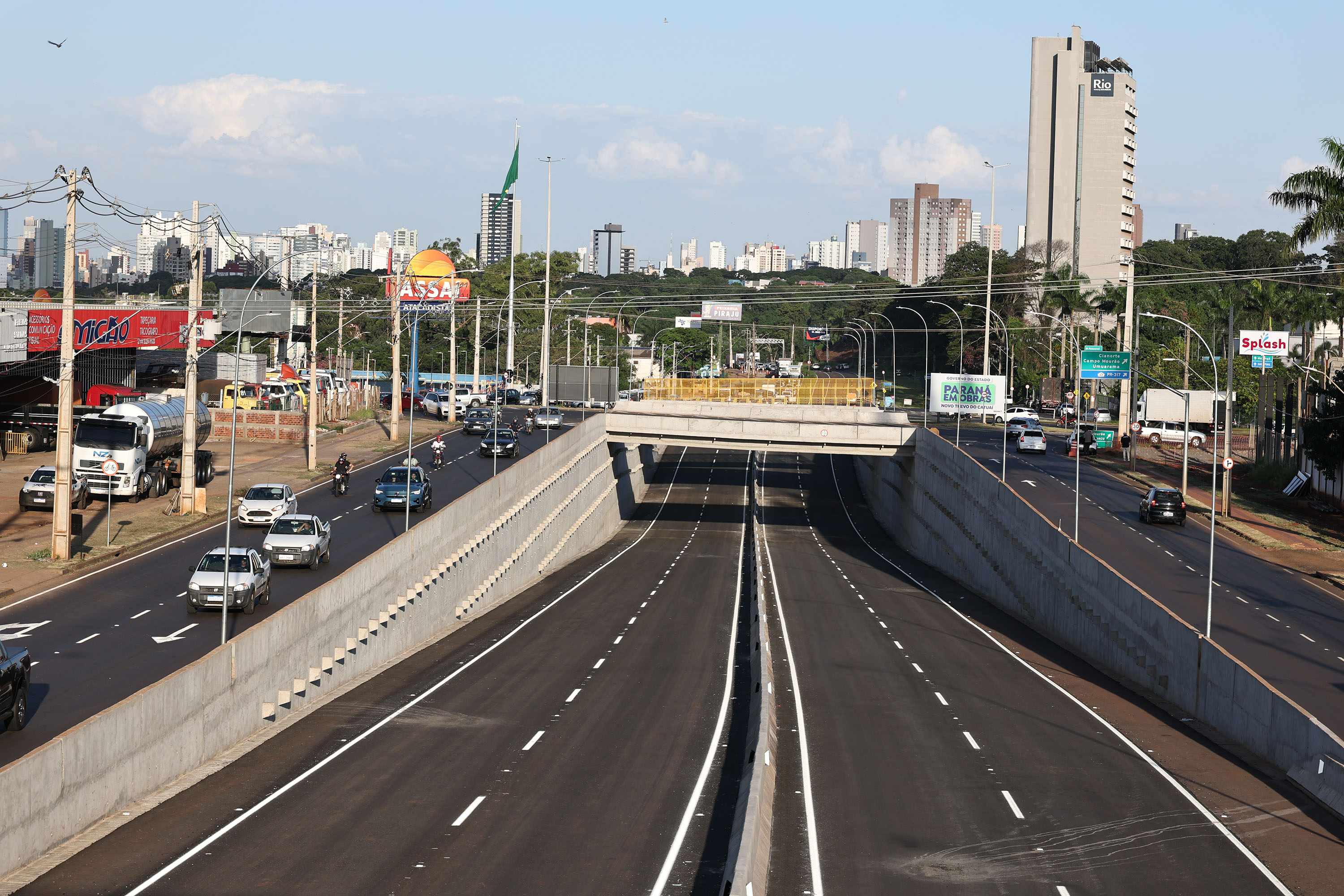 Executada pelo Departamento de Estradas de Rodagem do Paraná (DER/PR), a obra do Trevo de Catuaí incluiu o rebaixamento da pista da BR-376 e a implantação de duas passagens superiores que conectam a PR-317 à Avenida João Pereira. As estruturas funcionam como uma grande rotatória elevada, garantindo acesso organizado às vias urbanas e aos empreendimentos comerciais da região.