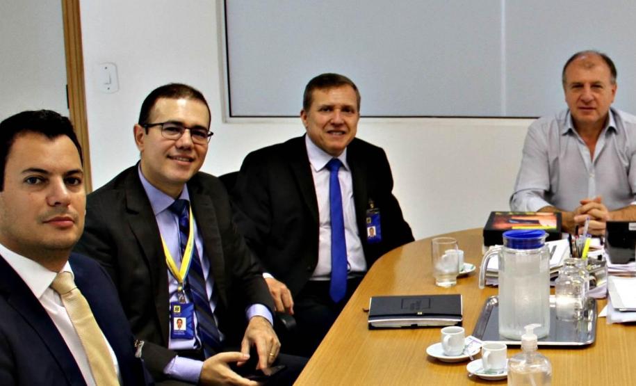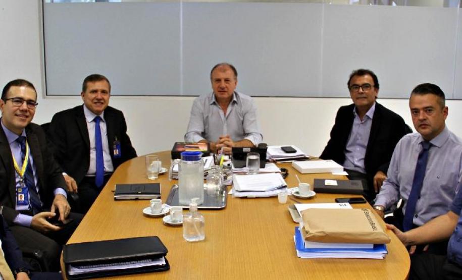Gerentes do Banco do Brasil, do setor de Relações Institucionais com o Governo do Paraná, visitaram na manhã desta quinta-feira, 17, o secretario de Estado do Desenvolvimento Urbano (SEDU), João Carlos Ortega, para apresentações e uma conversa preliminar sobre a possibilidade de abertura de novas linhas de créditos para Projetos às Prefeituras do Paraná. “Este foi um encontro de apresentações e de conversas preliminares. Mas, no futuro teremos novas reuniões para delinearmos as prioridades dos municípios e as possibilidades de investimentos que possam dar maior e melhor apoio ao desenvolvimento da população em todas as Regiões do Estado”, adiantou Ortega.
