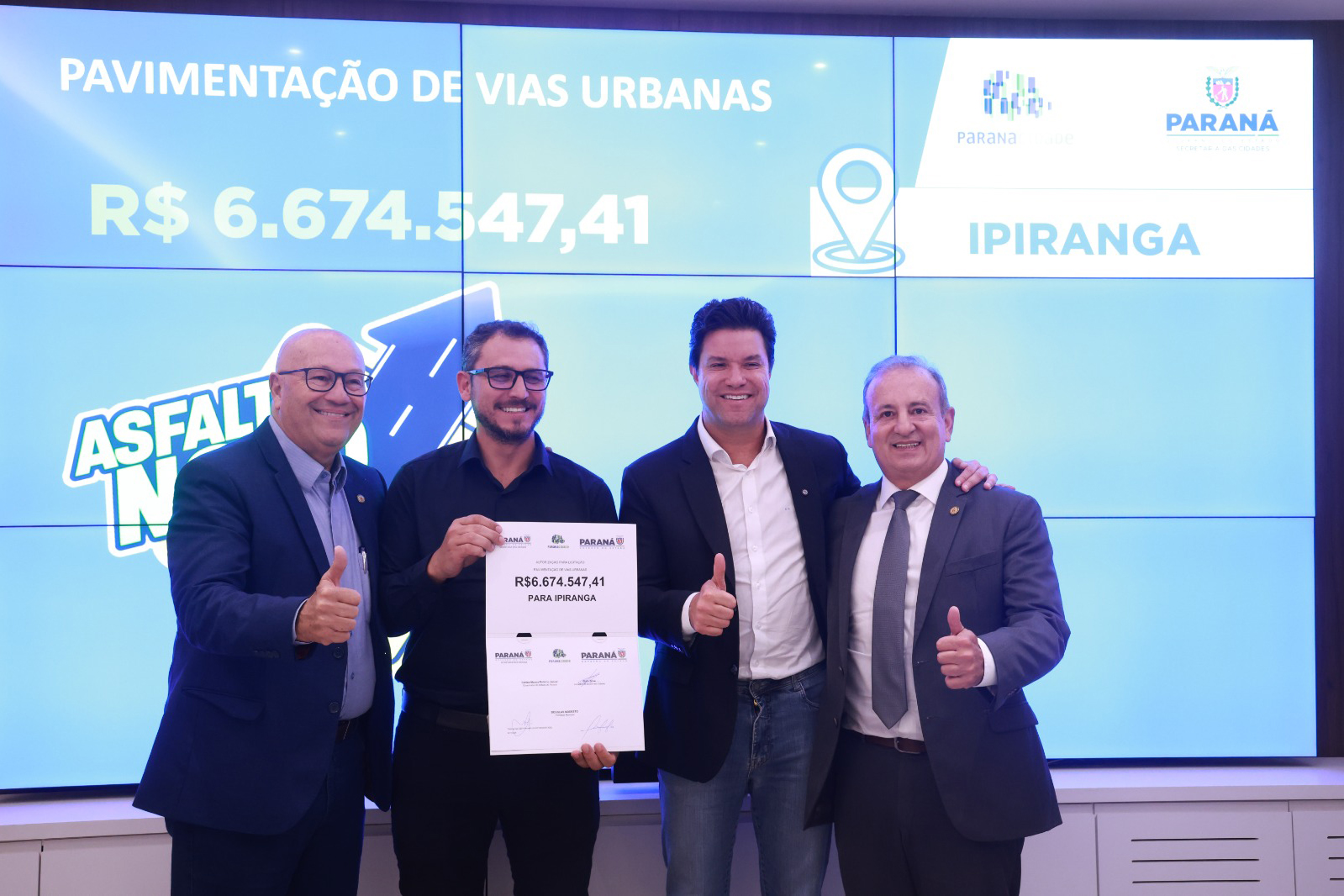 Iguatu terá R$ 2,8 milhões em investimentos, Ipiranga, R$ 6,6 milhões, Santa Lúcia R$ 2,2 milhões, Santa Maria do Oeste, R$ 5,1 milhões, Bom Jesus do Sul, R$ 6,2 milhões para obras em estrada vicinal municipal e Tamboara, R$ 12,8 milhões.