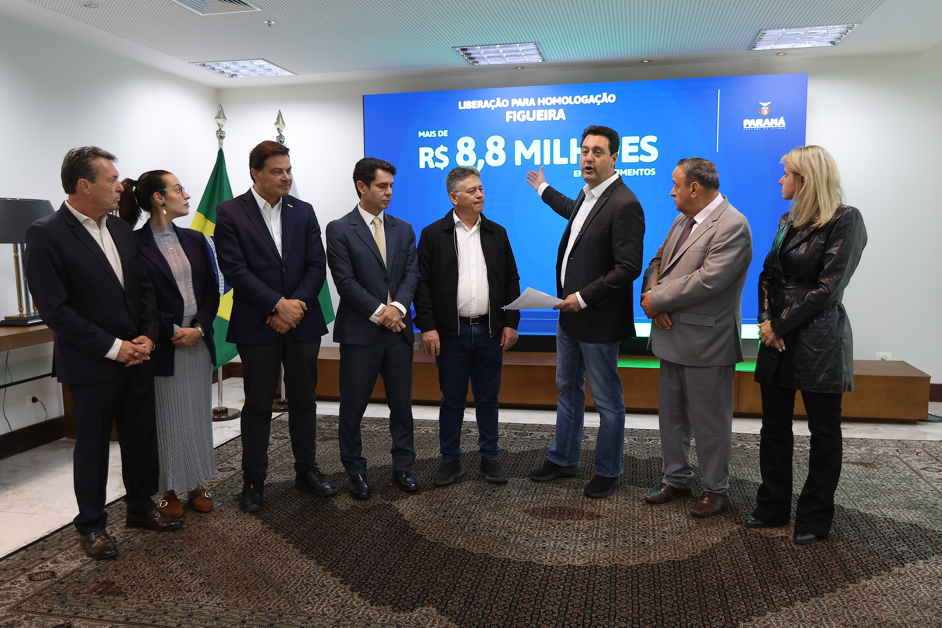 O governador Carlos Massa Ratinho Junior liberou nesta terça-feira (28) o montante de R$ 343,1 milhões para obras em 12 municípios. Os recursos serão investidos em diversas áreas, como a pavimentação urbana, por meio do programa Asfalto Novo, Vida Nova, e também de estradas rurais, construção de creches, escolas, barracões industriais, reforma de praças e aquisição de maquinários e veículos.