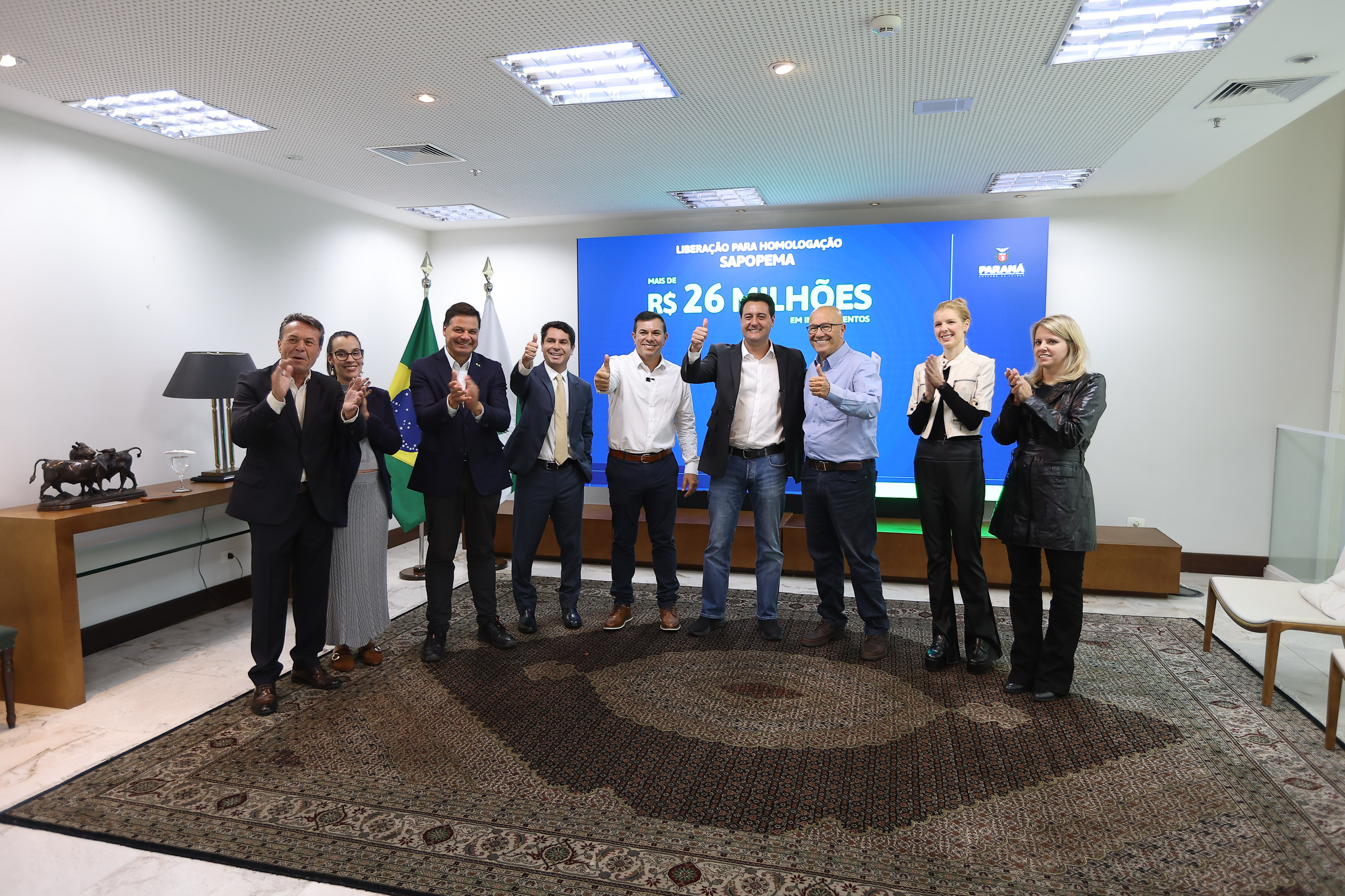 Na mesma região, a cidade de Sapopema está recebendo R$ 26 milhões para asfaltar a estrada que dá acesso ao Pico Agudo, importante atrativo turístico da região. Também estão previstas a pavimentação de vias urbanas, aquisição de veículos e renovação do parque de máquinas.