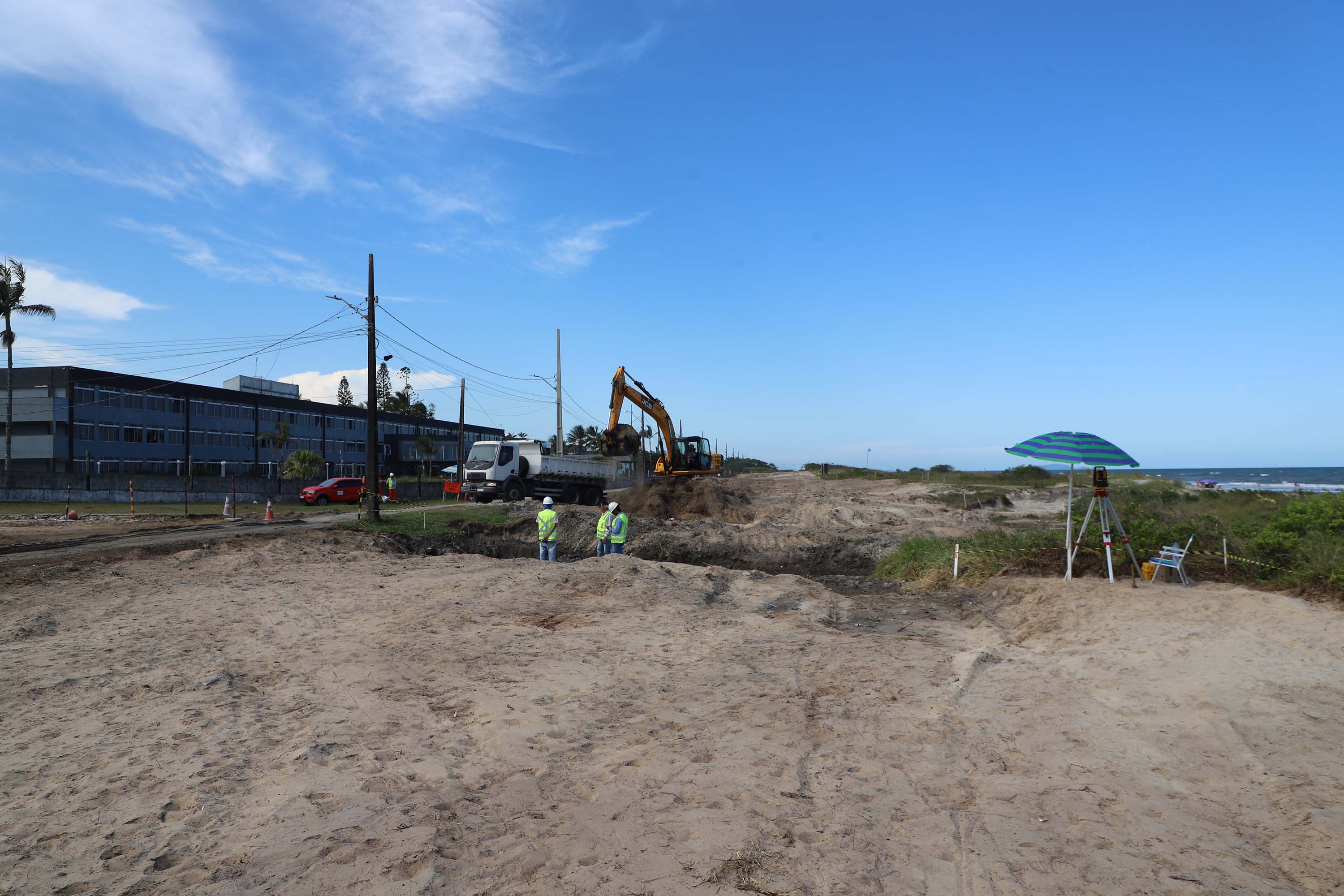 As frentes de trabalho estão concentradas no trecho entre os balneários de Canoas e Monções, na região de Praia de Leste, que corresponde à primeira fase do projeto. A etapa inicial contempla intervenções estruturantes ao longo de 3,66 quilômetros de orla, com foco em mobilidade, urbanização e preservação ambiental.