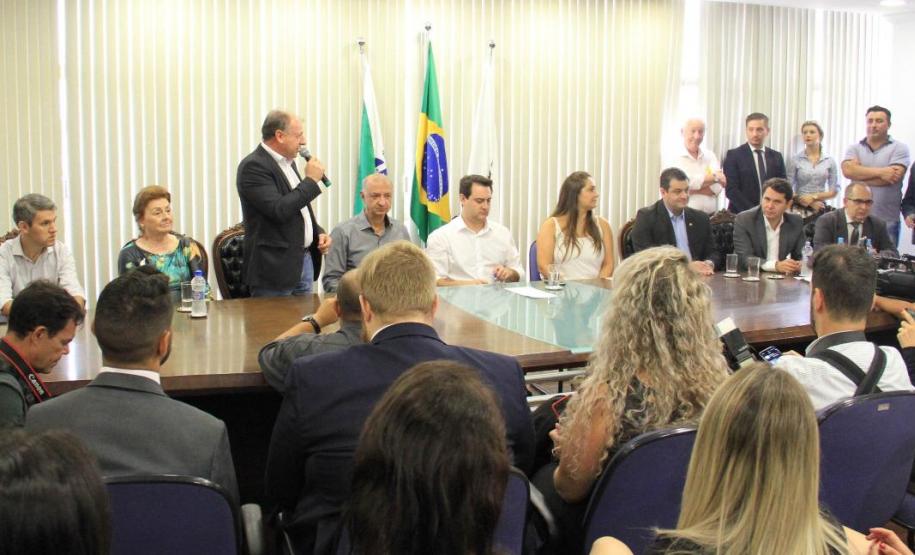 PRESENÇAS - Participaram também da solenidade o diretor-presidente da Coordenação da Região Metropolitana de Curitiba (COMEC), Gilson de Jesus dos Santos; a vice-prefeita de Araucária, Hilda Lukalski Seima; a presidente da Câmara dos vereadores do município, Amanda Nassar; e os deputados estaduais Alexandre Curi, delegado Recalcatti e Alexandre Amaro.