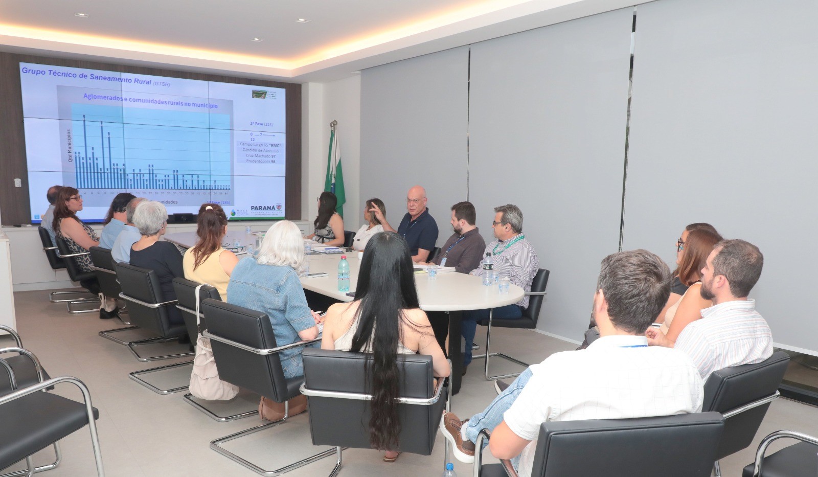 O Governo do Estado do Paraná realizou, no dia 02 de fevereiro de 2026, a 1ª reunião do Grupo de Trabalho de Saneamento Rural (GT-SR), instituído pelo Decreto Estadual nº 11.987/2025, com a finalidade de apoiar a formulação de diretrizes, estratégias e ações com objetivo de universalizar o acesso aos serviços de abastecimento de água potável e da coleta e tratamento de esgoto em áreas rurais, por meio do fomento e execução de atividades que garantam: equidade; intersetorialidade; sustentabilidade dos serviços e ambiental; participação e controle social, entre outros, visando a implantação e à ampliação da oferta dos serviços respeitadas às peculiaridades regionais.