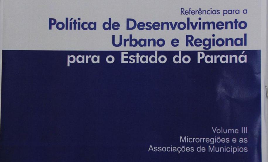 Técnicos da Secretaria do Desenvolvimento Urbano (SEDU) e do Serviço Social Autônomo (Paranacidade) preparam o terceiro volume da série “Política de Desenvolvimento Urbano e Regional”. As publicações começaram a ser produzidas no período em que o governador Carlos Massa Ratinho Junior estava à frente da SEDU. O primeiro volume da série, lançado em agosto de 2017, traz a definição de “Unidades Regionais do Paraná”, “Regiões Metropolitanas” e as “Diretrizes Institucionais para a Política de Desenvolvimento Urbano e Regional do Paraná”. O segundo volume trata das “Aglomerações Urbanas”, enquanto o de número três, ainda sem data de lançamento, aborda as “Microrregiões e Associações de Municípios”.