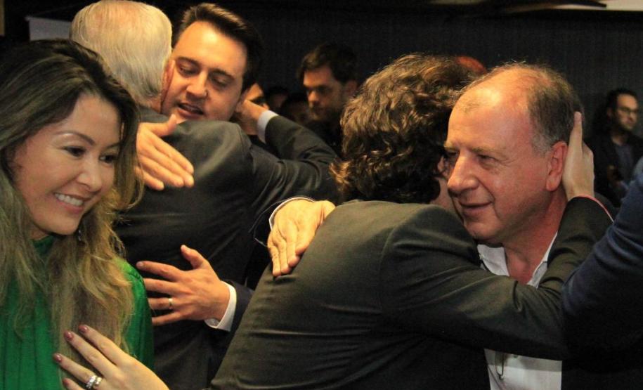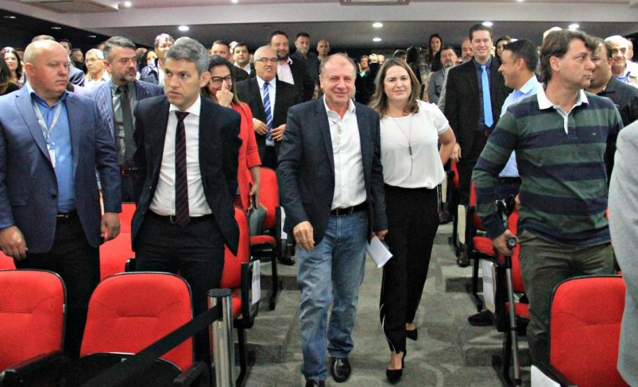 PRESENÇAS – Participaram da solenidade os secretários da Casa Civil, Guto Silva; da Agricultura e Abastecimento, Norberto Ortigara; do Desenvolvimento Sustentável e Turismo, Marcio Nunes; e do Planejamento, Valdemar Bernardo Jorge; o superintendente executivo do Paranacidade, Álvaro Cabrini Junior; os diretores-presidentes da COMEC, Gilson de Jesus dos Santos; e da Agepar, Ormar Akel; os presidentes da Sanepar, Claudio Stabile; da Agência de Fomento Paraná, Heraldo Neves; da Cohapar, Jorge Lange; e da Compagas, Rafael Lamastra Junior; o controlador-geral do Estado, advogado Raul Siqueira; e os deputados estaduais Nelson Justus; Goura; Luiz Felipe Guerra; Alexandre Curi; Anibelli Neto; Gilson de Souza e Soldado Adriano.