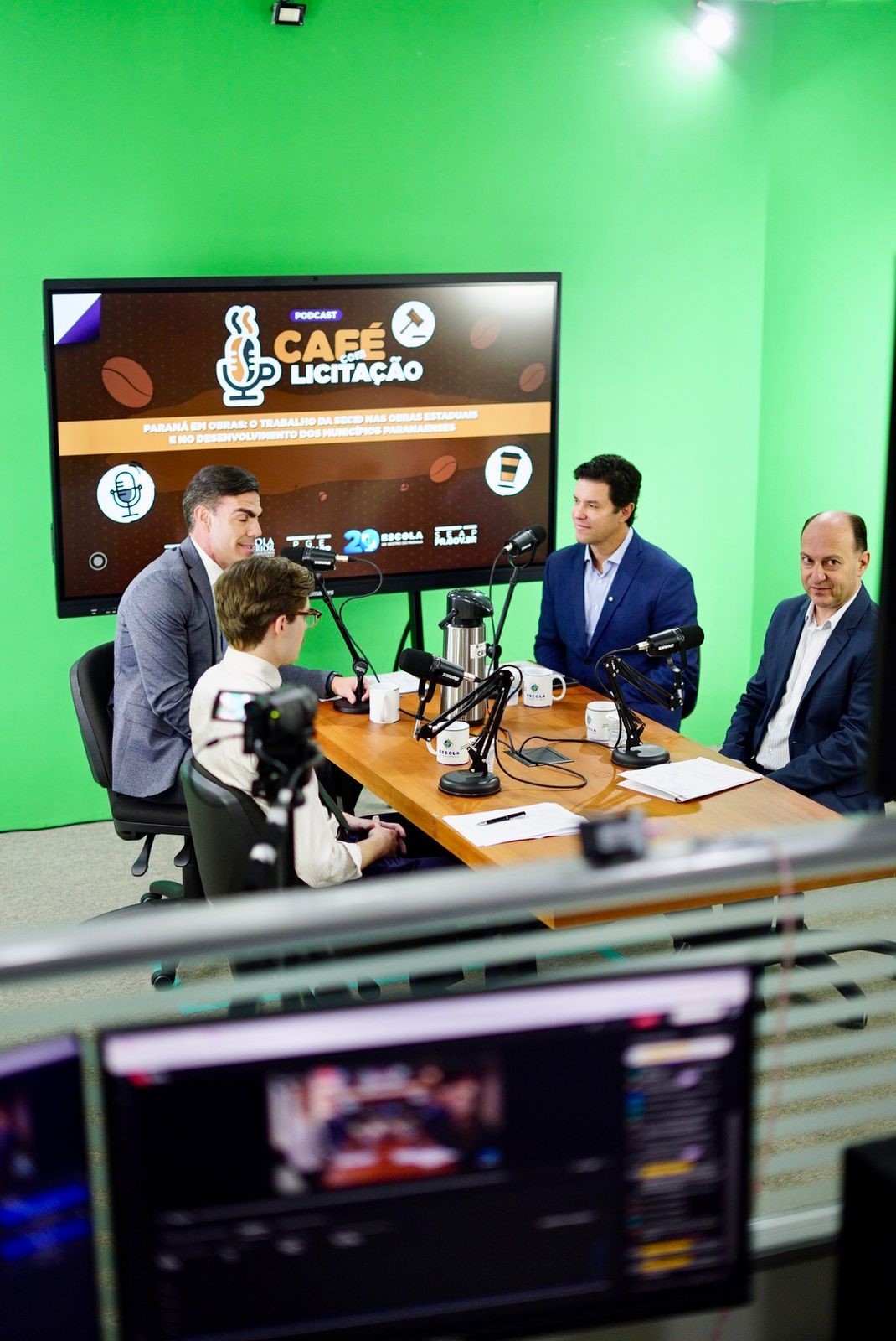 O secretário estadual das Cidades, Guto Silva, participou nesta quarta-feira (5) do podcast “Café com Licitação”, produzido pela Escola de Gestão do Paraná, da Secretaria da Administração e da Previdência (SEAP). O episódio contou com o mediador Bráulio Cesco Fleury, procurador-chefe da Procuradoria Consultiva de Obras e Serviços de Engenharia, e teve como tema: “Paraná em Obras: o trabalho da Secid nas obras estaduais e no desenvolvimento dos municípios paranaenses”. Além do secretário, participaram também o diretor de Desenvolvimento e Integração (DDI-Secid), Marcos Junior Marini, e o assessor da Secid, Rafael Rauta Buiar.